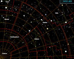 Carina was once a part of Argo Navis, the great ship of the mythical Jason and the Argonauts who searched for the Golden Fleece. The constellation of Argo was introduced in ancient Greece. However, due to the massive size of Argo Navis and the sheer number of stars that required separate designation, Nicolas-Louis de Lacaille divided Argo into three sections in 1763, including Carina (the hull or keel).[3] In the 19th century, these three became established as separate constellations, and were formally included in the list of 88 modern IAU constellations in 1930.[4] Lacaille kept a single set of Greek letters for the whole of Argo, and separate sets of Latin letter designations for each of the three sections. Therefore, Carina has the α, β and ε, Vela has γ and δ, Puppis has ζ, and so on.[5]