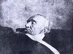 Gauss remained mentally active into his old age, even while suffering from gout and general unhappiness. On 23 February 1855, he died of a heart attack in Göttingen;[13] and was interred in the Albani Cemetery there. Heinrich Ewald, Gauss's son-in-law, and Wolfgang Sartorius von Waltershausen, Gauss's close friend and biographer, gave eulogies at his funeral.[56]