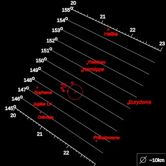 - ↑ Scott S. Sheppard, David C. Jewitt, Carolyn Porco Jupiter's outer satellites and Trojans, In: Jupiter. The planet, satellites and magnetosphere. Edited by Fran Bagenal, Timothy E. Dowling, William B. McKinnon. Cambridge planetary science, Vol. 1, Cambridge, UK: Cambridge University Press, ISBN 0-521-81808-7, 2004, p. 263 – 280 Full text(pdf). Archived June 14, 2007, at the Wayback Machine