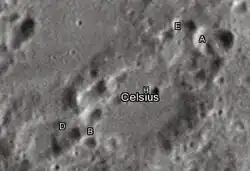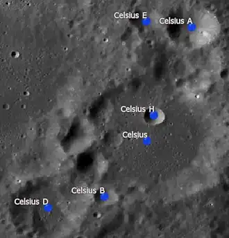 - ↑ "Celsius (crater)". Gazetteer of Planetary Nomenclature. USGS Astrogeology Research Program.