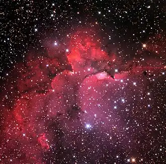Cepheus OB1 is an OB association around the cluster NGC 7380. The region is approximately 3,400 parsecs from Earth in the constellation of Cepheus, although many of its stars lie in neighboring constellations like Cassiopeia.