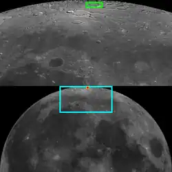 ![]() Lunar Orbiter 4 image (Main above center, Challis below center) | |