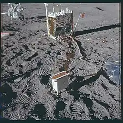 The ALSEP central station was located at 3°38′38″S 17°28′39″W / 3.6440°S 17.4775°W. The charged particle lunar environment experiment was deployed approximately 3 meters northeast of the central station. Leveling to 1.7 degrees, tipped to the east, was accomplished with a bubble level and east-west alignment to within 1 degree with a Sun compass. The instrument was deployed at approximately 18:00 UT on 5 February 1971 and commanded on at 19:00 UT for 5 minutes of functional tests. A checkout procedure was conducted on 6 February from 4:00 to 6:10 UT. Following LM ascent on 6 February at 18:49 UT the dust cover was commanded to be removed at 19:30 UT.