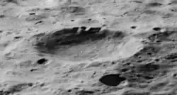 Chaucer is a lunar impact crater that is located to the west of the walled plain Hertzsprung, on the far side of the Moon. It lies to the northwest of the crater Vavilov and east of the Tsander–Kibal'chich crater pair. This is a circular crater with a slightly eroded outer rim. The interior floor is nearly featureless, with only a few tiny craterlets marking the surface. It is named after the writer Geoffrey Chaucer.