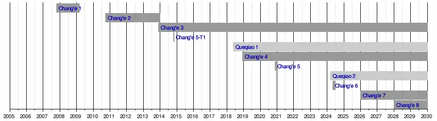 The program encompasses lunar orbiters, landers, rovers and sample return spacecraft, launched using the Long March series of rockets. A human lunar landing component may have been added to the program, after China publicly announced crewed lunar landing plans by the year 2030 during a conference in July 2023.[1]