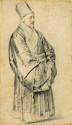 The Jesuits of the Jesuit China missions made efforts to adopt Chinese customs. Here Nicolas Trigault (1577–1628) in Chinese costume, by Peter Paul Rubens.
