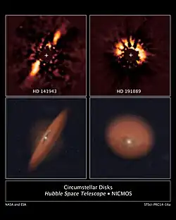 - ↑ "Circumstellar Disks HD 141943 and HD 191089". ESA/Hubble images. Retrieved 29 April 2014.