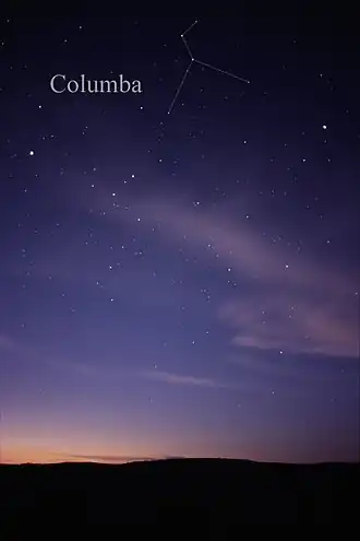 - 1 2 "Columba, constellation boundary". The Constellations. International Astronomical Union. Retrieved 27 February 2014.