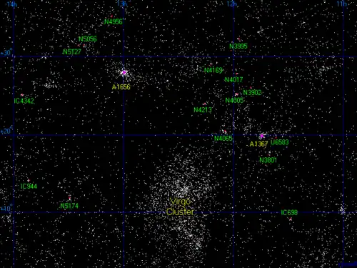 The Coma Supercluster (SCl 117) is a nearby supercluster of galaxies that includes the Coma Cluster (Abell 1656) and the Leo Cluster (Abell 1367).