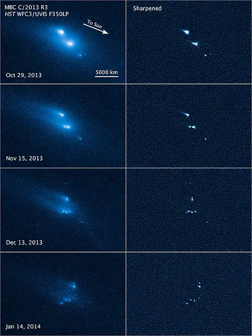 - ↑ Harrington, J.D. & Villard, Ray (6 March 2014). "Release 14-060: NASA's Hubble Telescope Witnesses Asteroid's Mysterious Disintegration". NASA. Retrieved 6 March 2014.