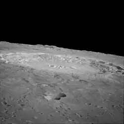 In 1966 the crater was photographed from an oblique angle by Lunar Orbiter 2 as one of 12 "housekeeping" pictures that were taken to advance the roll of film between possible astronaut landing sites being surveyed. At the time this detailed image of the lunar surface was termed by NASA scientist Martin Swetnick and subsequently quoted by Time magazine as "one of the great pictures of the century."[4]