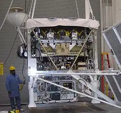 For power, the system includes batteries for energy storage, along with a solar array rated to sustain the mission for 100 days. Altogether, the instrument is expected to draw only 380 watts from a 28-volt supply, thanks to a very careful choice of energy-efficient electronics. In near-vacuum conditions, significant precautions must be taken against coronal discharges between unshielded electronics operating at as low as 100 volts. This is mitigated by encasing all relevant electronics in a lightweight dielectric compound, such as plaster.