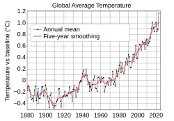 ![]() The increase in surface temperatures on Earth due to global warming This episode explores the nature of the greenhouse effect (discovered by Joseph Fourier and Svante Arrhenius), and the evidence demonstrating the existence of global warming from humanity's influence. Tyson begins by describing the long-term history of the planet Venus; based on readings from the Venera series of probes to the planet, the planet once had an ocean and an atmosphere, but due to the release of carbon dioxide from volcanic eruptions, the runaway greenhouse effect on Venus caused the surface temperatures to increase and boiled away the oceans. Tyson then notes the delicate nature of the amount of carbon dioxide in the atmosphere can influence Earth's climate due to the greenhouse effect, and that levels of carbon dioxide have been increasing since the start of the 20th century. Evidence has shown this to be from humankind's consumption of oil, coal, and gas instead of from volcanic eruptions due to the isotopic signature of the carbon dioxide. The increase in carbon dioxide has led to an increase in temperatures, in turn leading to positive feedback loops of the melting polar ice caps and dethawing of the permafrost to increase carbon dioxide levels. Tyson then notes that humans have discovered means of harvesting solar power, such as Augustin Mouchot's solar-driven motor in the 19th century, and Frank Shuman's solar-based steam generator in the 1910s. Tyson points out that in both cases, the economics and ease of using cheap coal and oil caused these inventions to be overlooked at the time. Today, solar and wind-power systems would be able to collect enough solar energy from the sun easily. Tyson then compares the motivation for switching to these cleaner forms of energy to the efforts of the Space race and emphasizes that it is not too late for humanity to correct its course. | |||||