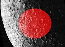 ![]() Oblique Lunar Orbiter 5 image, with the approximate extent of the basin highlighted in red | |