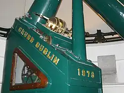 At the time of construction, the instrumentation at the Crawford observatory was at the cutting edge of astronomy, with the Grubb equatorial telescope winning a gold medal at the 1878 Paris show (Exposition Universelle).[1][3] However, as light pollution in Cork city increased over the following decades the observatory gradually fell into disuse and disrepair.