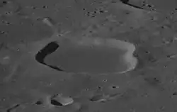 Crozier is a lunar impact crater that is located on the southwest edge of Mare Fecunditatis, a lunar mare in the eastern part of the Moon's near side. It lies to the east-northeast of the prominent crater Colombo, and southeast of the small crater Bellot.