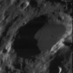 The interior has been resurfaced with lava, leaving a flat and relatively featureless floor. But the lava was not of sufficient depth to significantly reduce the width of the inner walls.