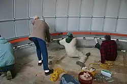 Previously, the dome was home to a 25-inch (f/5) reflector. To bring the eyepiece of this telescope to a level that does not require observers to climb a high ladder, the optics on this telescope were modified by Justine Haupt, an engineer at Brookhaven National Lab.