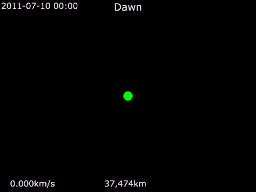 - ↑ "View of Vesta from Dawn". NASA/JPL MYSTIC simulator (updated periodically). Retrieved September 1, 2012.