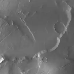- ↑ Scully, J. E. C.; Russell, C. T.; Yin, A.; Jaumann, R.; Carey, E.; et al. (2014). Sub-Curvilinear Gullies Interpreted as Evidence for Transient Water Flow on Vesta (PDF). 45th Lunar and Planetary Science Conference. March 17–21, 2014. The Woodlands, Texas. Bibcode:2014LPI....45.1796S.