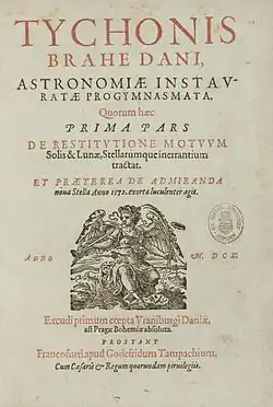 Tycho received financial support from several nobles in addition to the emperor, including Oldrich Desiderius Pruskowsky von Pruskow, to whom he dedicated his famous Mechanica. In return for their support, Tycho's duties included preparing astrological charts and predictions for his patrons at events such as births, weather forecasting, and astrological interpretations of significant astronomical events, such as the supernova of 1572, sometimes called Tycho's supernova, and the Great Comet of 1577.[58]