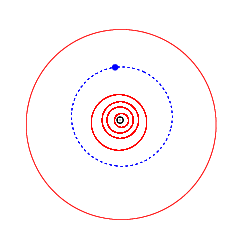 In October 2015, astronomer Jean-Luc Margot of the University of California Los Angeles proposed a metric for orbital zone clearance derived from whether an object can clear an orbital zone of extent 2√3 of its Hill radius in a specific time scale. This metric places a clear dividing line between the dwarf planets and the planets of the solar system.[66] The calculation is based on the mass of the host star, the mass of the body, and the orbital period of the body. An Earth-mass body orbiting a solar-mass star clears its orbit at distances of up to 400 astronomical units from the star. A Mars-mass body at the orbit of Pluto clears its orbit. This metric, which leaves Pluto as a dwarf planet, applies to both the Solar System and to extrasolar systems.[66]