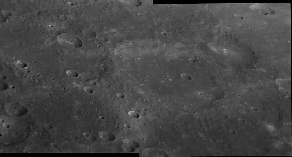 Derzhavin and Enheduanna craters from MESSENGER's second flyby of Mercury in October 2008.