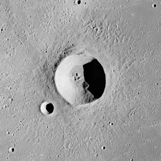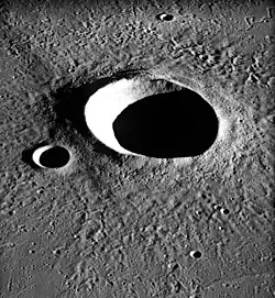 Oblique view of Diophantus from Apollo 17, at low sun angle, with the smaller Diophantus C at left.