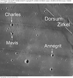 - ↑ Dorsum Zirkel, Gazetteer of Planetary Nomenclature, International Astronomical Union (IAU) Working Group for Planetary System Nomenclature (WGPSN)