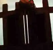 If one illuminates two parallel slits, the light from the two slits again interferes. Here the interference is a more pronounced pattern with a series of alternating light and dark bands. The width of the bands is a property of the frequency of the illuminating light.[20] (See the bottom photograph to the right.)