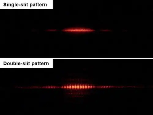 If light consisted strictly of ordinary or classical particles, and these particles were fired in a straight line through a slit and allowed to strike a screen on the other side, we would expect to see a pattern corresponding to the size and shape of the slit. However, when this "single-slit experiment" is actually performed, the pattern on the screen is a diffraction pattern in which the light is spread out. The smaller the slit, the greater the angle of spread. The top portion of the image shows the central portion of the pattern formed when a red laser illuminates a slit and, if one looks carefully, two faint side bands. More bands can be seen with a more highly refined apparatus. Diffraction explains the pattern as being the result of the interference of light waves from the slit.