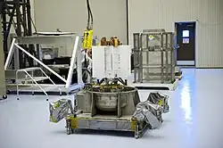 On 3 March 2023, Dragonfly passed its preliminary design review (PDR).[29] In November 2023 following NASA's decision to postpone the formal confirmation of the mission due to funding uncertainties, the launch was delayed by one year, with a new launch date set for July 2028.[30] On 25 November 2024, NASA announced the launch service award for the Dragonfly mission. Dragonfly will launch on a SpaceX Falcon Heavy with a targeted launch period from 5 July 2028, to 25 July 2028.