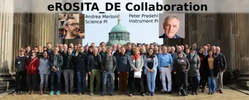 eROSITA was developed at the Max Planck Institute for Extraterrestrial Physics in collaboration with institutes in Bamberg, Hamburg, Potsdam und Tübingen. The instrument principal investigator is Peter Predehl. The project scientist is Andrea Merloni. The German eROSITA consortium has members from institutes all across Germany, but also from international institutes, and has established collaborations with ground-based telescopes for follow-up observations of the millions of sources that will be detected by eROSITA.