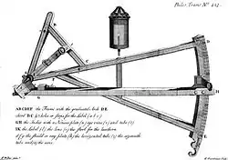 An Elton's quadrant is a derivative of the Davis quadrant. It adds an index arm and artificial horizon to the instrument, and was invented by English sea captain John Elton, who patented his design in 1728 and published details of the instrument in the Philosophical Transactions of the Royal Society in 1732.[1][2]