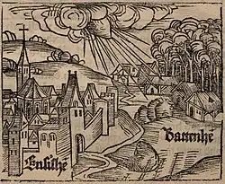 ![]() The fall of the meteorite, as depicted in the Nuremberg Chronicle from 1493. | |