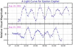 - ↑ Bruntt, H.; Suárez, J. C.; Bedding, T. R.; Buzasi, D. L.; Moya, A.; Amado, P. J.; Martín-Ruiz, S.; Garrido, R.; López de Coca, P.; Rolland, A.; Costa, V.; Olivares, I.; García-Pelayo, J. M. (January 2007), "Asteroseismology with the WIRE satellite I. Combining ground- and space-based photometry of the δ Scuti star ɛ Cephei", Astronomy and Astrophysics, 461 (2): 619–630, arXiv:astro-ph/0610539, Bibcode:2007A&A...461..619B, doi:10.1051/0004-6361:20065766.