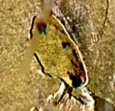 Estan Patera is a patera, or a complex crater with scalloped edges, on Jupiter's moon Io. It is 95 kilometers in diameter and located at 21°32′N 87°35′W / 21.53°N 87.59°W[1]. It is named after the Hittite sun god Estan. Its name was adopted by the International Astronomical Union in 2006.[1] It is located at the northern base of the 11-kilometer mountain Gish Bar Mons. Located west-northwest is Skythia Mons, and to the southwest is Monan Mons, at the northern and southern ends of which are Monan Patera and Ah Peku Patera.[2]