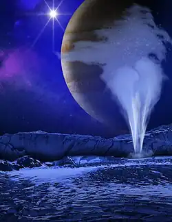 Water vapor plume on Europa (artist concept; December 12, 2013)[31]