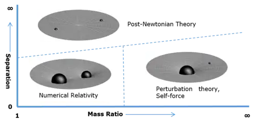 One common approach is to expand the equations of motion for an object in terms of its velocity divided by the speed of light, v/c. This approximation is very effective if the velocity is very small, but becomes rather inaccurate if v/c becomes larger than about 0.3. For binary systems of comparable mass, this limit is not reached until the last few cycles of the orbit. EMRIs, however, spend their last thousand to a million cycles in this regime, making the post-Newtonian expansion an inappropriate tool.[1]