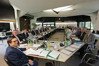 ESO signed a contract for its construction,[59] together with the main structure of the telescopes, with the Italian ACe Consortium, consisting of Astaldi and Cimolai[60] and the nominated subcontractor, Italy's EIE Group.[61] The signature ceremony took place on 25 May 2016[62] at ESO's Headquarters in Garching bei München, Germany.
