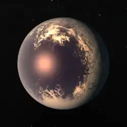 Kepler-1652b is potentially an eyeball planet.[3] The TRAPPIST-1 system may contain several such planets.[4] According to the observations of the James Webb Space Telescope in 2024, the super-Earth[a] planet LHS 1140b might either have a thin ice shell with a subsurface ocean or an icy surface covered partially in liquid water, the latter of which is an attribute of "cold" eyeball planet.[5]