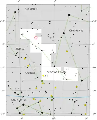 FH Serpentis (Nova Serpentis 1970) was a nova, which appeared in the constellation Serpens in 1970. It reached magnitude 4.4.[5] It was discovered on February 13, 1970 by Minoru Honda located at Kurashiki, Japan.[6][7] Other astronomers later studied this nova, and calculated its distances based on the decay time of its light curves.[7]