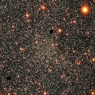 FSR 1758 (also known as the Sequoia Cluster)[2] is a large and bright but heavily obscured globular cluster belonging to the Milky Way galaxy. It is located at a distance of about 11.5 kpc from the Sun and about 3.7 kpc from the center of the galaxy. As FSR 1758 lies behind the galactic bulge, it is heavily obscured by the foreground stars and dust. It was first noticed in 2007 in 2MASS data[3] and believed to be an open cluster, until data from the Gaia mission revealed in 2018 that it is a globular cluster.[4]