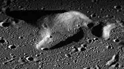 This feature is slightly elongated and oddly shaped, with a ridge on the northern side. This ridge is about as large around the base as Federov crater, and rises about 0.8 km above the surrounding lunar mare.