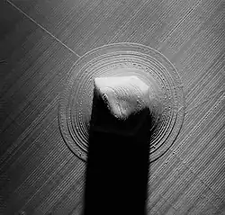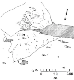 In planetary geology the term fillet describes a fine-grained deposit in an apron shape configuration that partially or entirely surround boulders on the surface of the Moon.[1][2] Fillets are a morphological expression of lunar soil development.