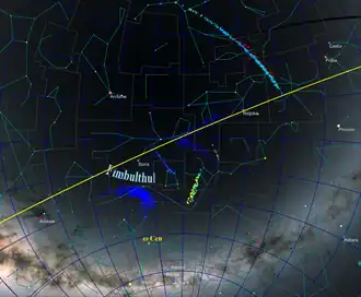 Fimbulthul is a tidal stellar stream torn off from Omega Centauri, the largest globular cluster of our Milky Way galaxy. The stream contains 309 known stars stretching over 18° in the constellations of Hydra and Centaurus, matching the same age as the globular cluster. Omega Centauri is thought to be the nucleus of a dwarf galaxy that merged with the Milky Way.[1]