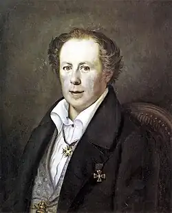 Argelander was born in Memel in the Kingdom of Prussia (now Klaipėda in Lithuania), the son of a father of Finnish descent, Johann Gottlieb Argelander, and German (Prussian) mother, Dorothea Wilhelmina Grünhagen.[1] He studied with Friedrich Bessel, whose assistant he became in 1820,[2] and obtained his Ph.D. in 1822 at University of Königsberg. From 1823 until 1837, Argelander was the head of the Finnish observatory, first in Turku and then in Helsinki. He then moved to Bonn, Germany. There he designed and built a new observatory at the University of Bonn with funding approved directly by King Frederick William IV whom Argelander had become friends with in his childhood. This lifelong friendship had started when the then crown prince temporarily lived in Argelander's parents house after the Prussian royal family fled to Memel after the Battle of Jena–Auerstedt during the Napoleonic Wars.