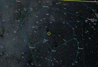 | Proper motion (μ) | RA: −2.351±0.061[1] mas/yr Dec.: −0.396±0.043[1] mas/yr |