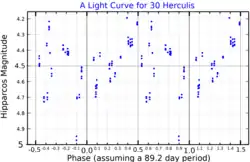 A light curve for g Herculis, plotted from Hipparcos data[1]