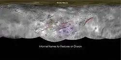 - ↑ "Global map of Charon". Retrieved 25 April 2018.